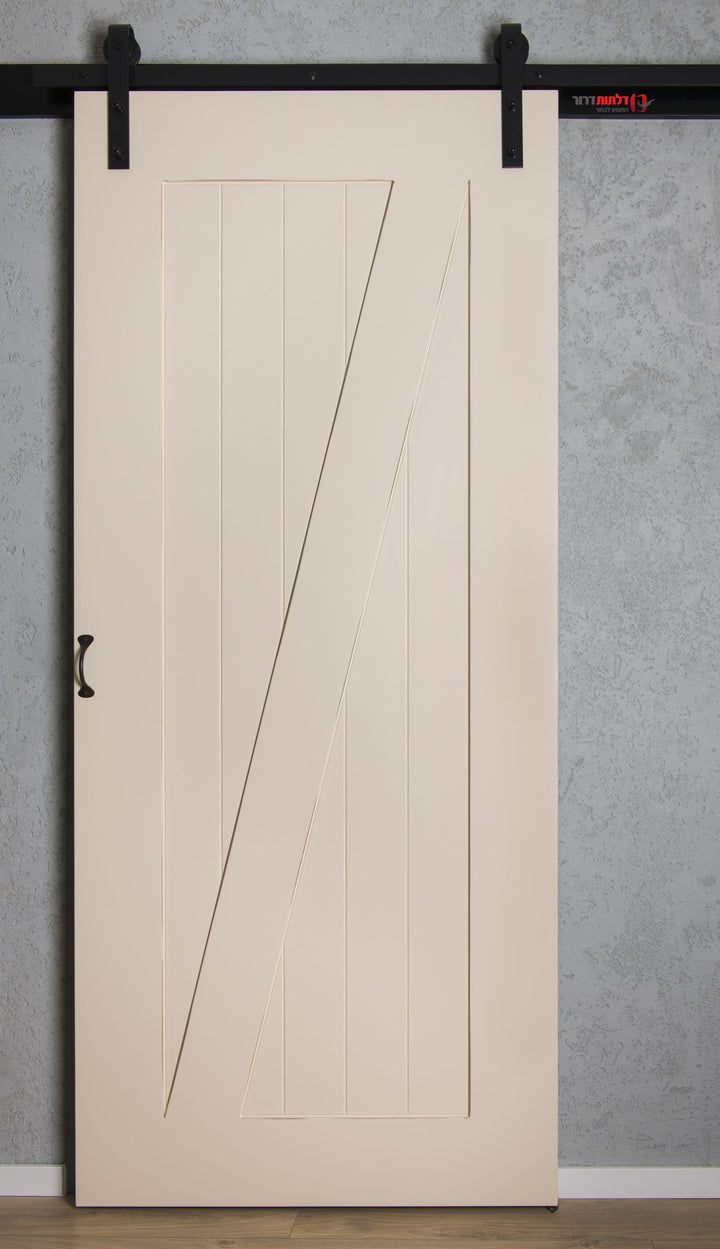 דלת אסם שמנת משלבת עיצוב כפרי קלאסי עם נגיעה מודרנית בגוון שמנת אלגנטי וחמים. החירוצים האנכיים בשילוב האלכסון בצורת Z מעניקים לה מראה אותנטי ומלא אופי, המתאים במיוחד לחללים המעוצבים בסגנון ייחודי. הדלת מגיעה עם ידית ומסילה ייעודית לטריקה שקטה בפתיחה ובסגירה, ומותקנת ללא משקוף.